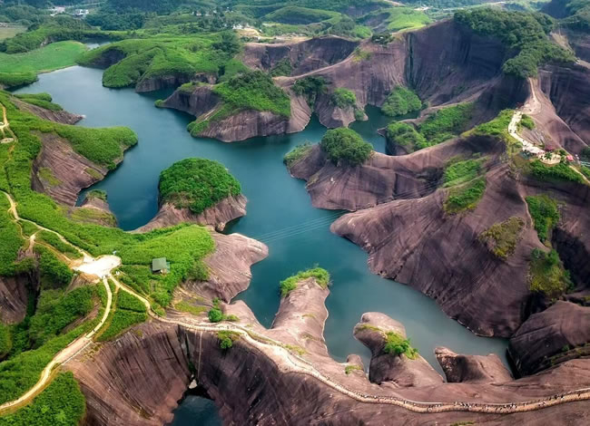 抵達(dá)后,前往郴州抖音最火網(wǎng)紅打卡地【高椅嶺】(游覽時(shí)間約3.5小時(shí))。車(chē)覽【馬皇丘大峽谷】,峽谷原為一條小路穿行而過(guò),現(xiàn)為一條漂亮的馬路,卻造就了另一種景觀,其中絕壁上的酷似女性私處【陰元石】更是丹霞景觀一絕。而后徒步高椅嶺,欣賞絕美之丹霞碧水,【巨蜥臥水】。先是歷經(jīng)【瓜石頸】之天梯險(xiǎn)境,再是近距離感受【羊牯石】景區(qū)之絕美。從高處往下鳥(niǎo)瞰瓜石頸,一條清澈美麗的“天河”蜿蜒穿行在丹霞地貌之間,或?qū)捇蛘禐榇笥^,從羊牯石景區(qū)原路返回至瓜石頸,沿另一條石級(jí)自上而下欣賞水中“巨蜥”形神兼?zhèn)渲^美,驚于大自然的造化與鬼斧神工。這一片丹霞碧水,因?yàn)榈は嫉孛仓苓呌衅恋乃蔹c(diǎn)綴,美得一塌糊涂。